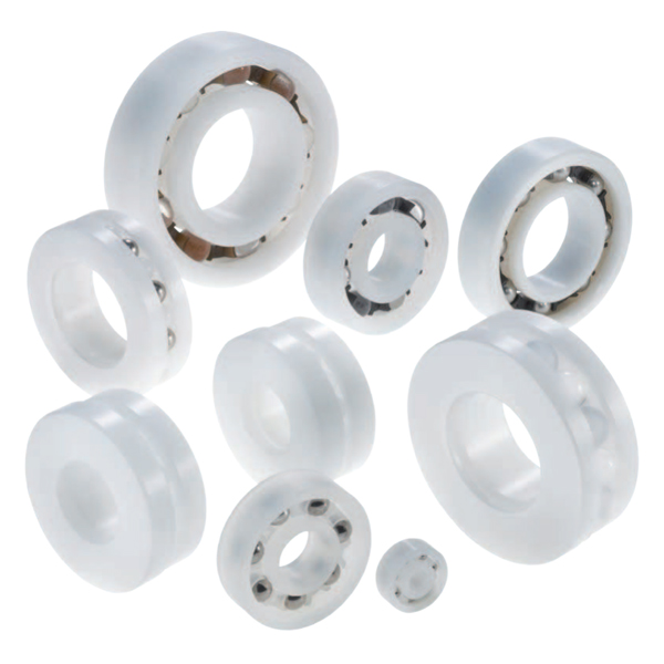 這些軸承具有耐受腐蝕和許多化學物質的性能。 他們的重量輕且靜音運行。 聚合物球軸承無需潤滑劑。